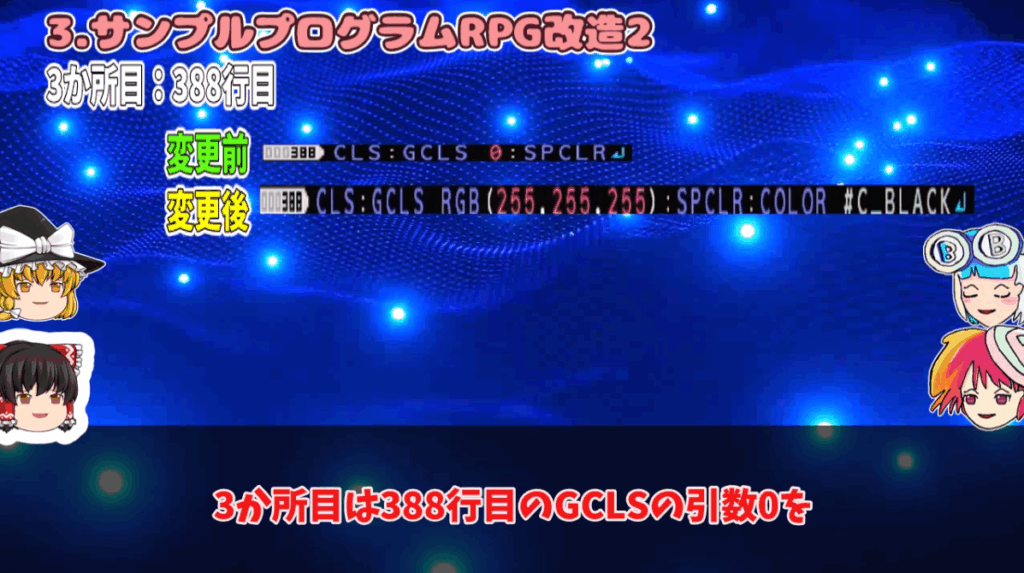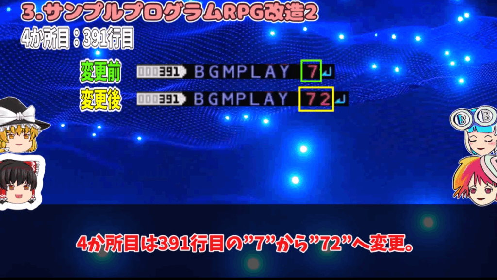 3.エンディングの変更(388行目)動画の17分45秒